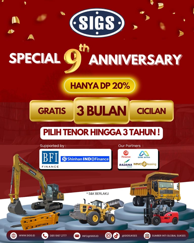 SIGS hadir sebagai mitra terpercaya untuk kebutuhan alat berat Anda, menawarkan rangkaian lengkap unit berkualitas seperti bulldozer, excavator, wheel loader, forklift, hingga breaker yang siap pakai untuk berbagai proyek konstruksi, pertambangan, infrastruktur, dan industri berkinerja tinggi. Sebagai Authorized Dealer resmi untuk merek Lovol dan Shantui, SIGS berkomitmen menyediakan produk dengan standar ketat untuk memastikan daya tahan, efisiensi, dan produktivitas maksimal, sekaligus memberikan dukungan lengkap mulai dari konsultasi, penyediaan suku cadang, hingga layanan purna jual profesional sesuai kebutuhan pelanggan.